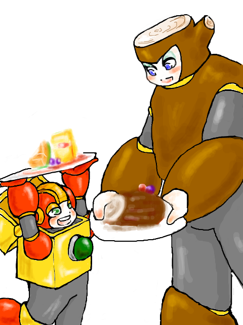 スポンジケーキを四角に切り、上部を更に切り取ってイチゴやチェリーなんかを挟んだ物にオレンジメロン、ブドウなどを添えて、チョコレートソース、ストロベリーソースをかけたもの。四角いケーキがヒートマンで二種類のソースがアトミックファイヤー、メロンはボス部屋近くにいるジョーでブドウはスプリンガーを表しています。豪華にしたい場合は、キウイ(フライボーイ)やビスケット(テリー)を添えるといいかも。
